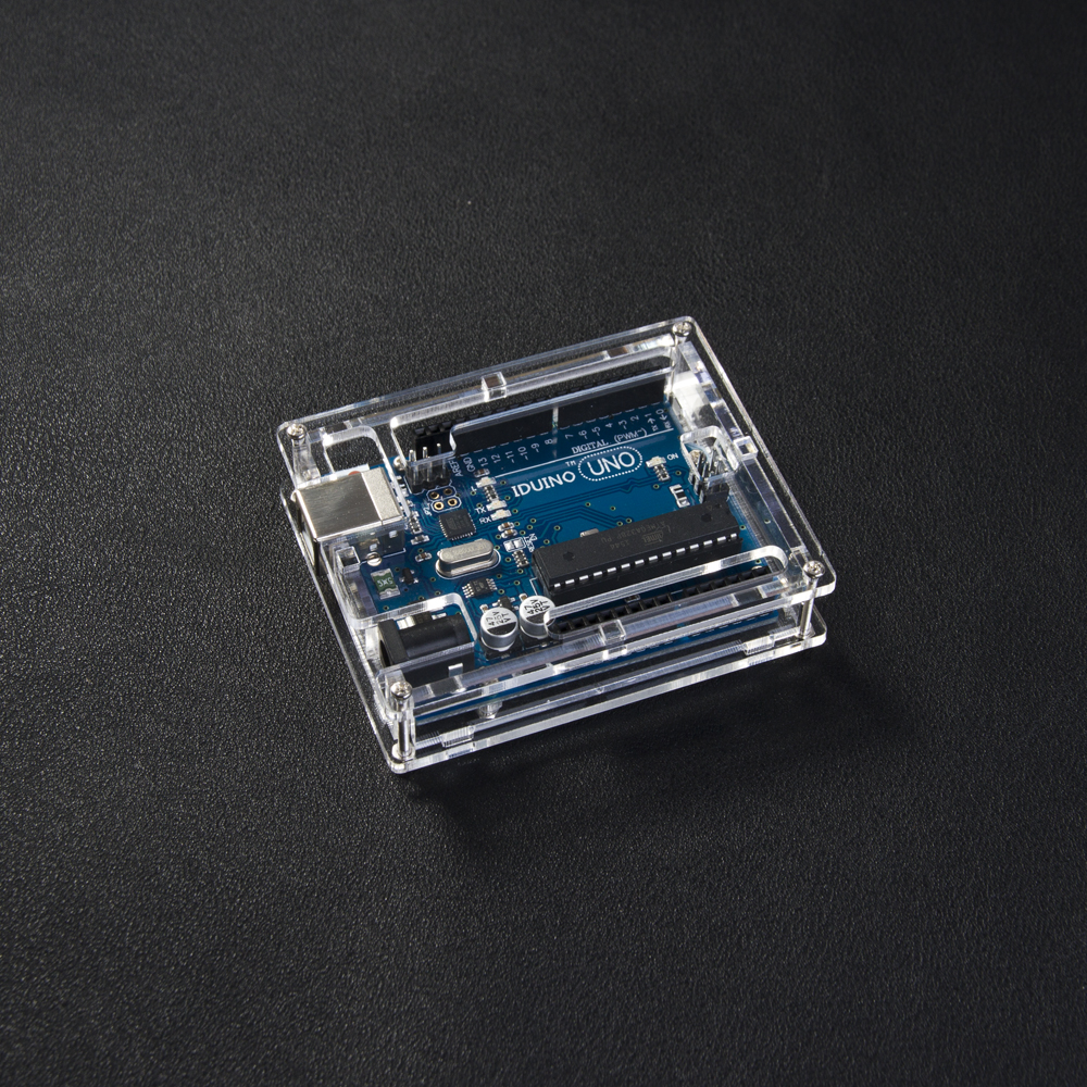 This is a protective case designed for UNO R3 development board.It is acrylic material, and consists