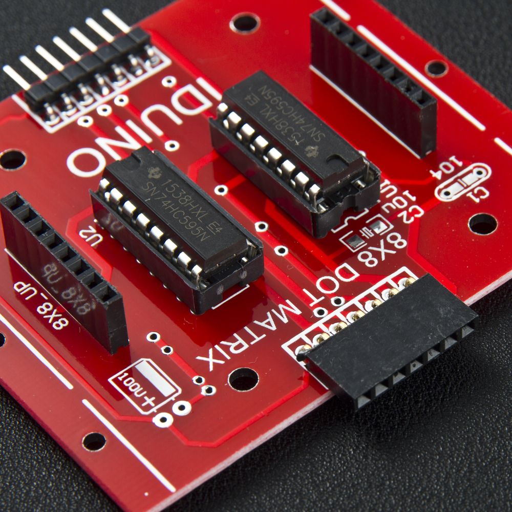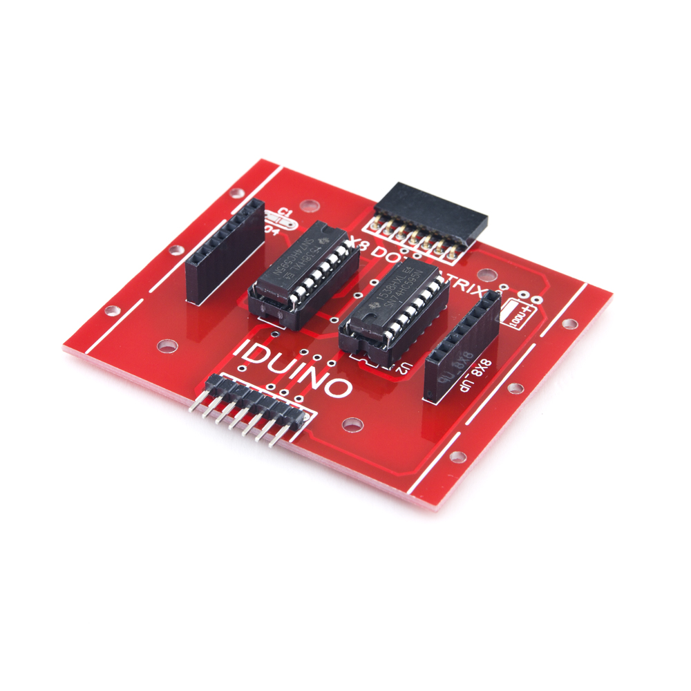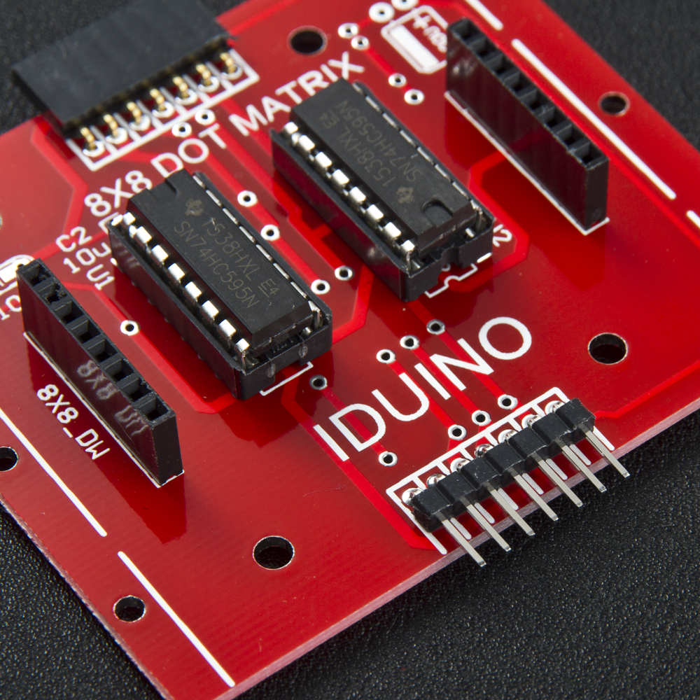 This module is equipped with high-speed 74HC595 deserializer chip. Only 3 signal lines are needed to drive 8 x 8 dot matrix screen, saving your valuable I/O resources in Arduino controller.