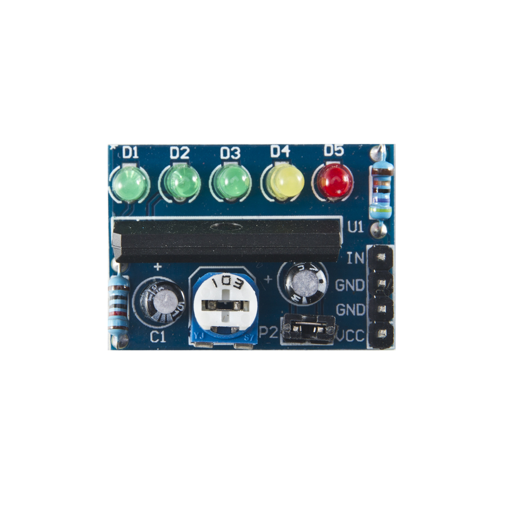 The KA2284 battery level indicator contains five LED lights that progressively light up as the voltage increases. The AC and DC input of this module can be selected by a jumper and it can handle voltages that range from 3.5 V to 12 V.