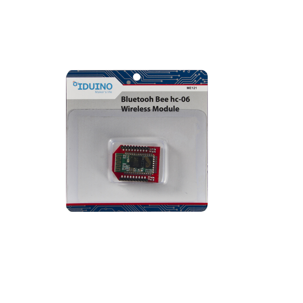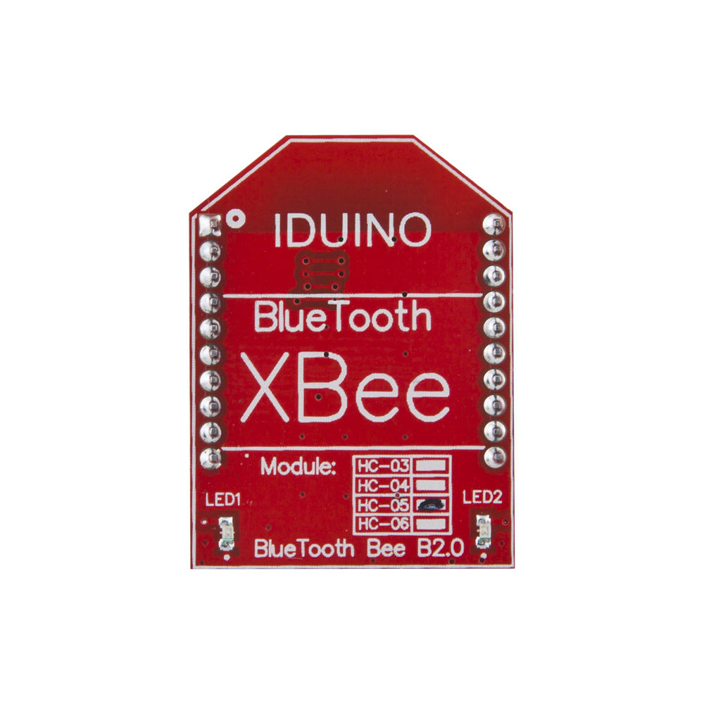 IDUINO Bluetooh XBee Bluetooth wireless module HC-05 adopts XBEE design. It has features of compact size, compatible with XBEE shield, and suitable for various 3.3V MCU systems. The module can use AT command to set baud rate and master/slave mode, user info etc. The default settings are baud rate 38400, paring password 1234.