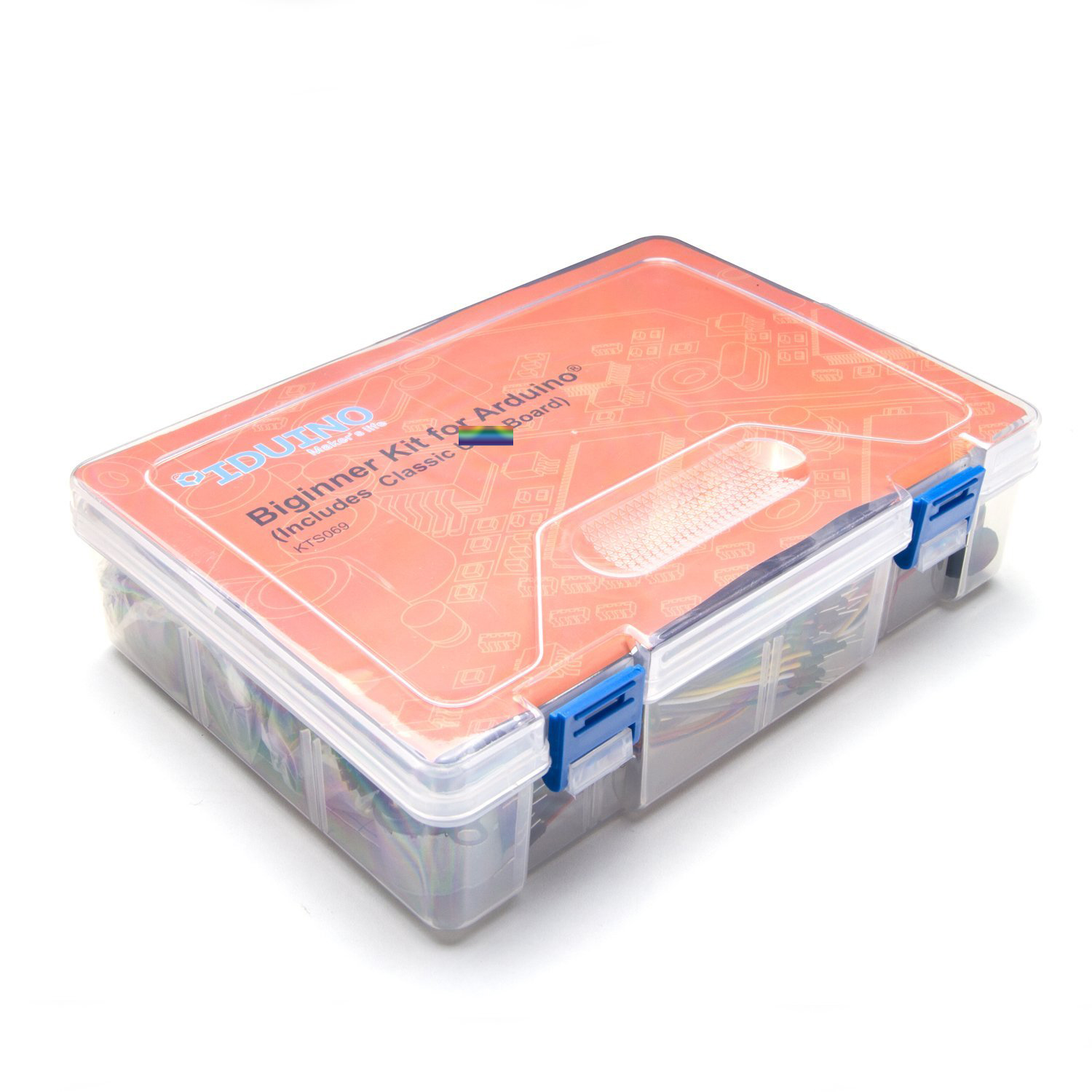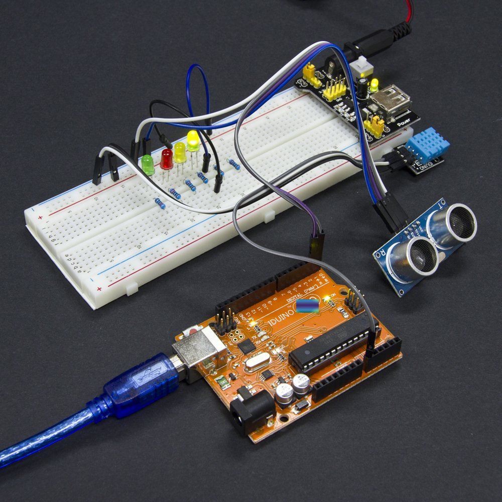 1 x IDUINO UNO R3 ; 1 xServo Motor (SG90); 1 xStepper Motor; 1 xULN2003 Stepper Motor Driver Board; 1 xPrototype Expansion with Mini Breadboard; 1 xPower Supply Module; 1 xPIR Motion Sensor; 1 xUltrasonic Sensor; 1 x3V Motor; 1 xMAX7219 Module; 1 x21 Key Remoter;1 x9V 1A Power Supply; 1 x65 Jumper Wires; 1 xWater Lever Sensor; 1 xUSB Cable; 1 xThermistor; 1 xTilt Switch; 1 x1 Digit 7-Segment Display; 1 x4 Digit 7-Segment Display; 1 xSound Sensor Module; 1 xLCD1602 Module; 1 xIC L293D; 1 xIC 74HC595; 1 xActive Buzzer; 1 xPassive Buzzer; 1 xRTC Module; 1 xDHT11 Temperature and Humidity Module; 1 xRotary Encoder Module; 1 xJoystick Module; 1 x4 x 4 Matrix Keypad; 1 x5V Relay Module; 1 xTSOP1838 IR Infrared 37.9Khz Receiver; 1 xFan Cap(small ); 1 xBattery Connector Wire; 1 xRGB LED; 1 x830 Point Breadboard; 2 xPhoto-resistor; 2 xPotentiometer; 4 xElectrolytic Capacitor (10UF & 100UF); 5 xDiode Rectifier (1N4007); 5 xPush Button (small); 10 xCeramic Capacitor (104pf & 22pf); 10 xNPN Transistor (PN2222 & 58050); 1 x20pcs Female-to-male Dupont Wire; 25 xLED ; 100 xResistors;